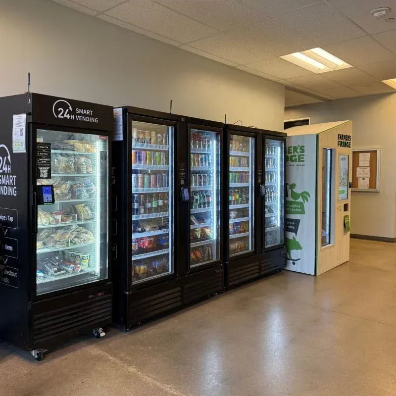 Purchasing from our machines is simple! To make a purchase, simply use Your card or another form of cashless payment method to unlock the fridge. Grab what you'd like, and our technology will automatically charge you accordingly.